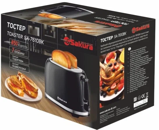 Тостер SAKURA SA-7610BK 850Вт черный