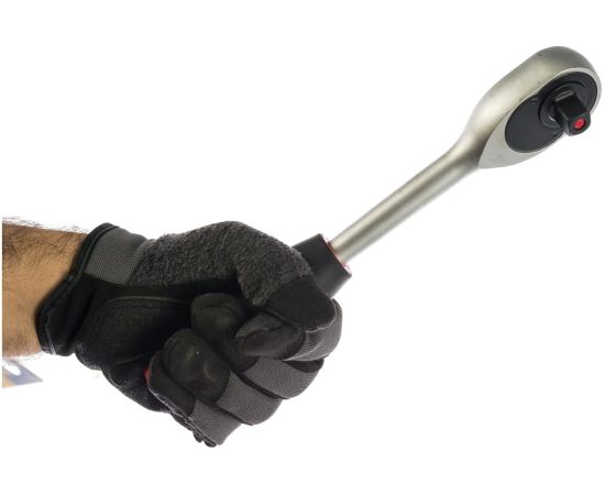 Трещотка FORCE 24 зуба 1/2 80242 обладает прочной рабочей частью и эргономичной рукояткой. Инструмент используется совместно с торцевыми головками для установки и снятия винтов. Трещотка имеет посадочный квадрат 1/2". Храповый механизм изделия обладает 24 зубцами.