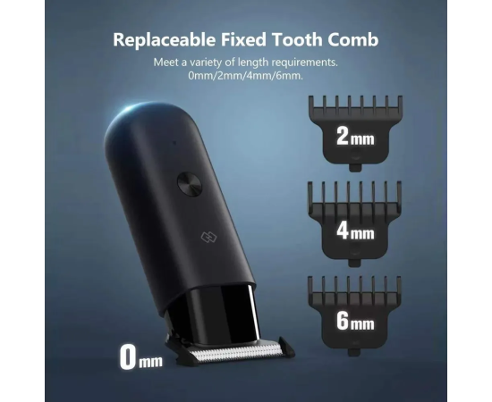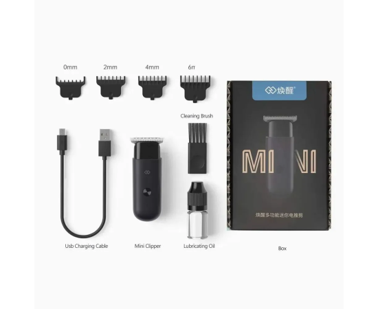 Xiaomi Huanxing Multi-Functional Mini Electric Clippers (EC101) Black - электрический триммер для стрижки волос и бороды размером всего 10 см. Прост в использовании, подходит для дома и путешествий благодаря USB-порту для зарядки. Закругленные лезвия и гребни плавно скользят по коже, не царапая ее. Маленький корпус, большая мощность - до 6200 об/мин. Уровень шума в помещении составляет 45 дБ. В комплекте набор сменных насадок 0 мм/2 мм/4 мм/6 мм, щетка для очистки лезвий, смазочное масло, провод для зарядки.