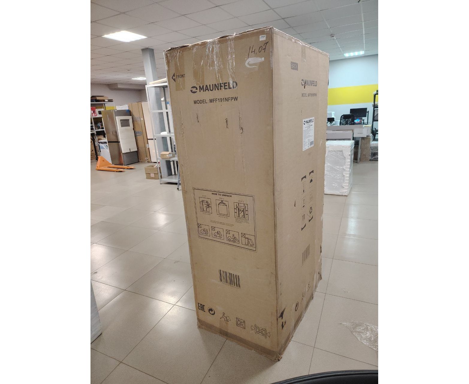 УЦ Холодильник MAUNFELD MFF191NFPW (плохая упаковка, смещение дверей, мал. царапина сбоку, замятие сзади внизу)