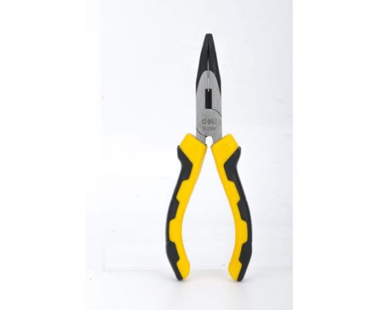 Удлиненные плоскогубцы Deli DL2306 с изогнутыми губками 160мм, угол загиба губок 30°, сталь CrV, двухкомпонентная ручка (592412)