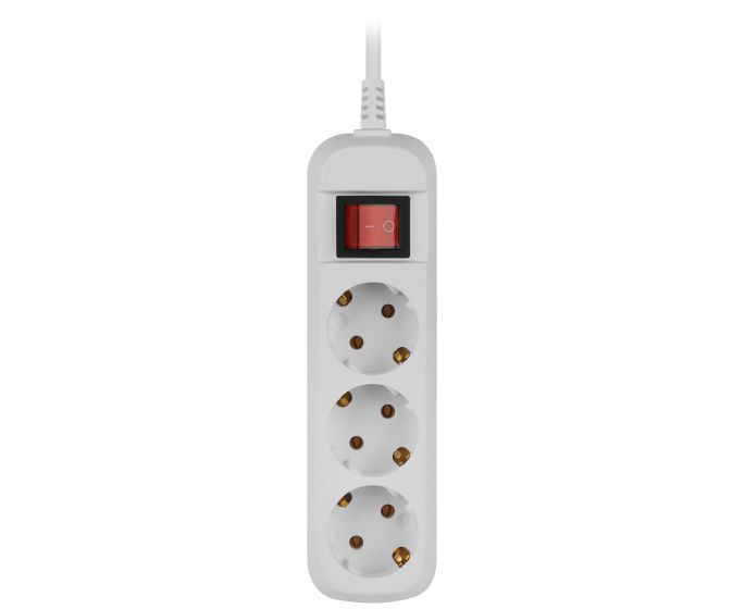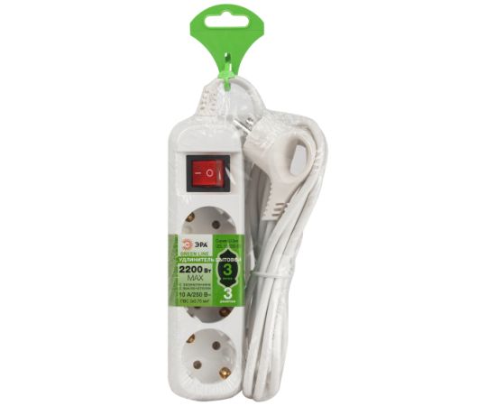 Удлинитель ЭРА UDL-10-330-ES Greenline, 3 розетки, с заземлением, с выключателем, 10А, 3м, белый