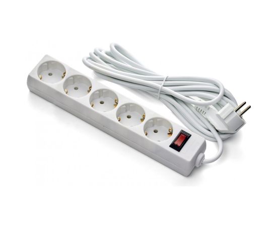 сетевой удлинитель, 5 розеток, 5 м, белый