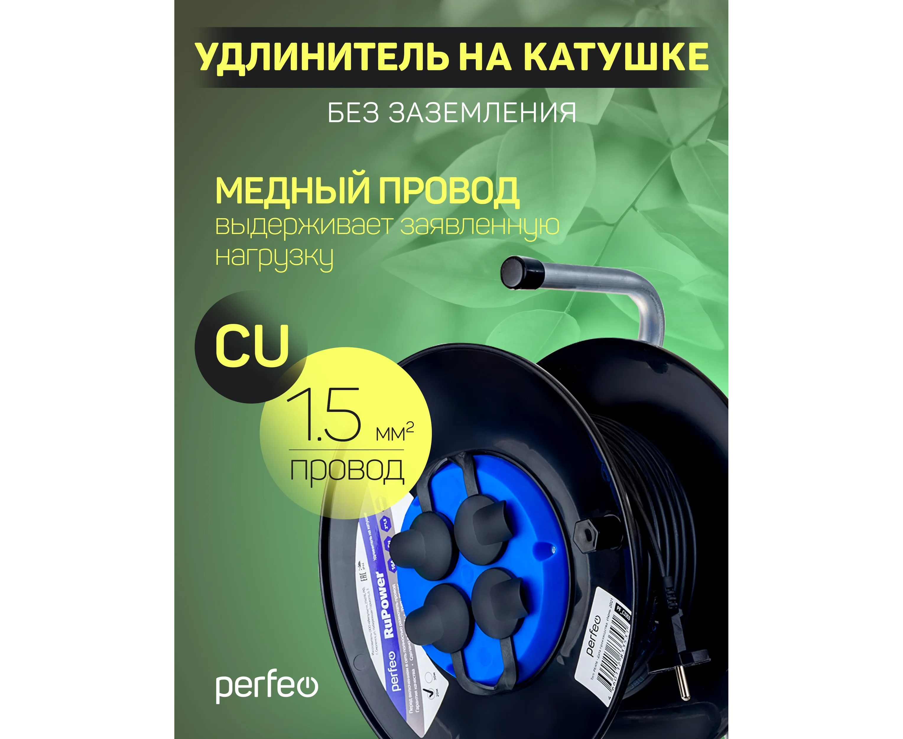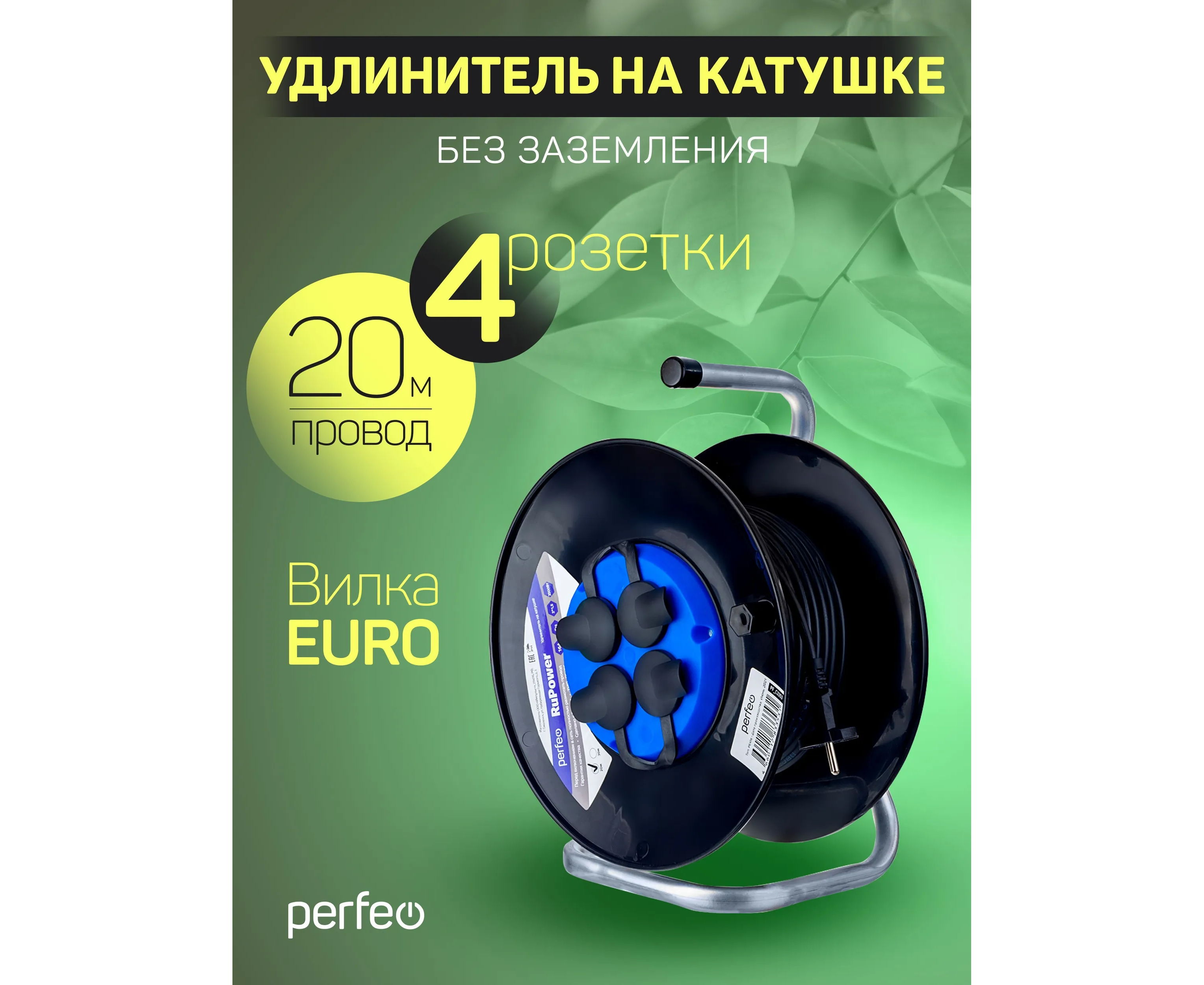 Удлинитель на катушке Perfeo без заземления "RU POWER" 20м 4гн 16А ПВС 2х1,5 IP44 (РБК16), (Арт. PF_C3353)