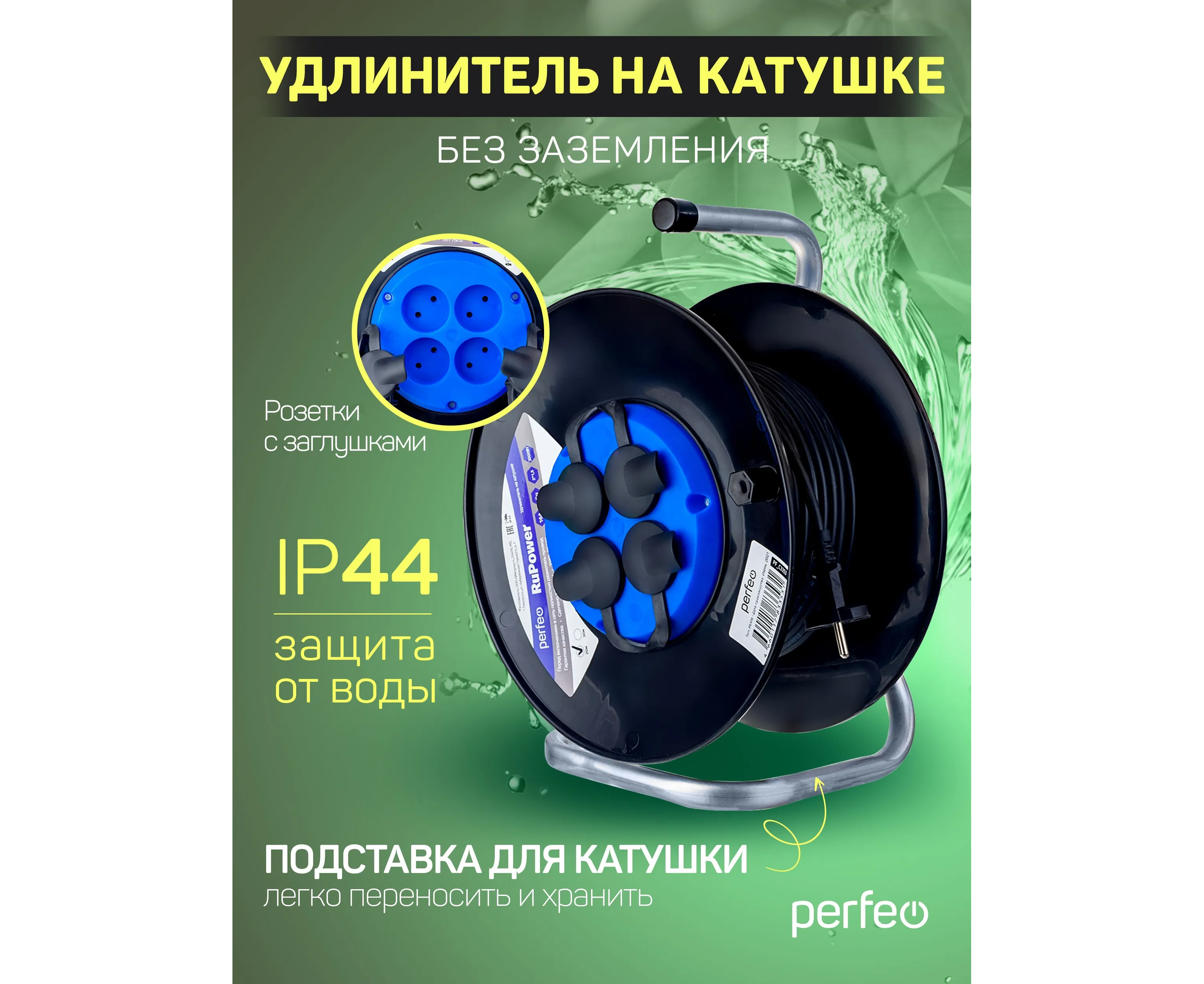 Удлинители на катушках Perfeo "RuPower" - спасение в ситуациях, когда стандартной длины шнура питания становится недостаточно. Они идеально подойдут для подключения ремонтного, строительного и другого оборудования. Модель имеет защиту от влаги и пыли IP44 и может эксплуатироваться в помещениях с повышенным уровнем влажности или на улице под крышей. Защита от воды и пыли: IP44. Медный провод выдерживает заявленную нагрузку. Рукоятка для переноски и металлическая подставка для удобства размещения и устойчивости. Входное напряжение 220-230В. Рабочая частота 50/60 Гц. Суммарная мощность нагрузки 4.5 кВт. Номинальная сила тока 16 A. Максимальная поглощаемая энергия 90 Дж. Входная вилка EURO без заземления. Количество розеток 4 EURO без заземления.