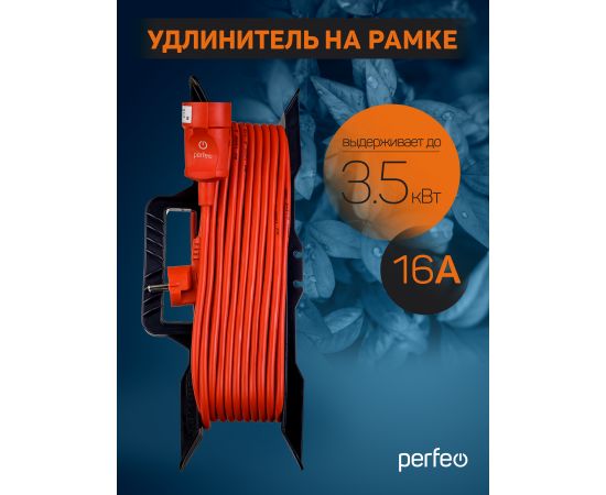 Удлинитель на рамке с заземлением Perfeo "RU POWER"10м 1гн 16А ПВС 3х1,5 ( УХз16-101) оранжевый.