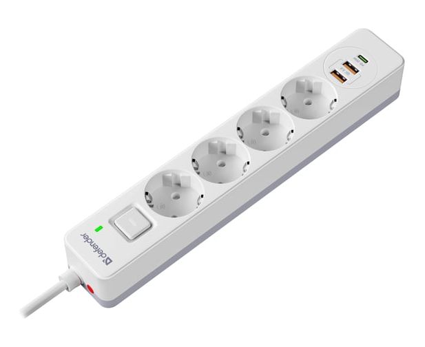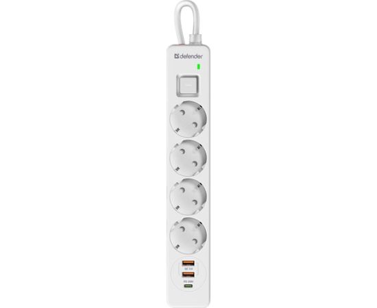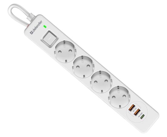 Удлинитель DEFENDER с сетевым фильтром DFS 145 5 м, белый, 4розетки, USB+TypeC (99435)