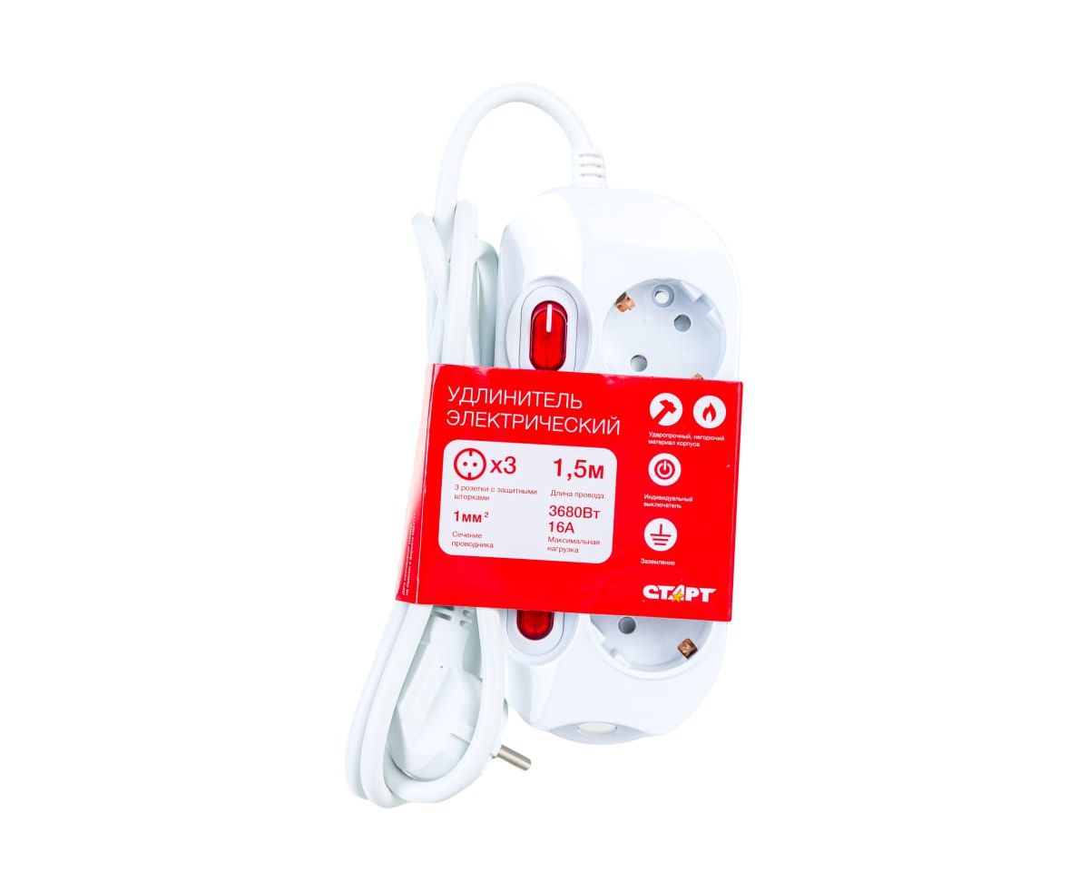Удлинитель СТАРТ 4607175852678 3 розетки. с/у S 3x1/1,5 м.