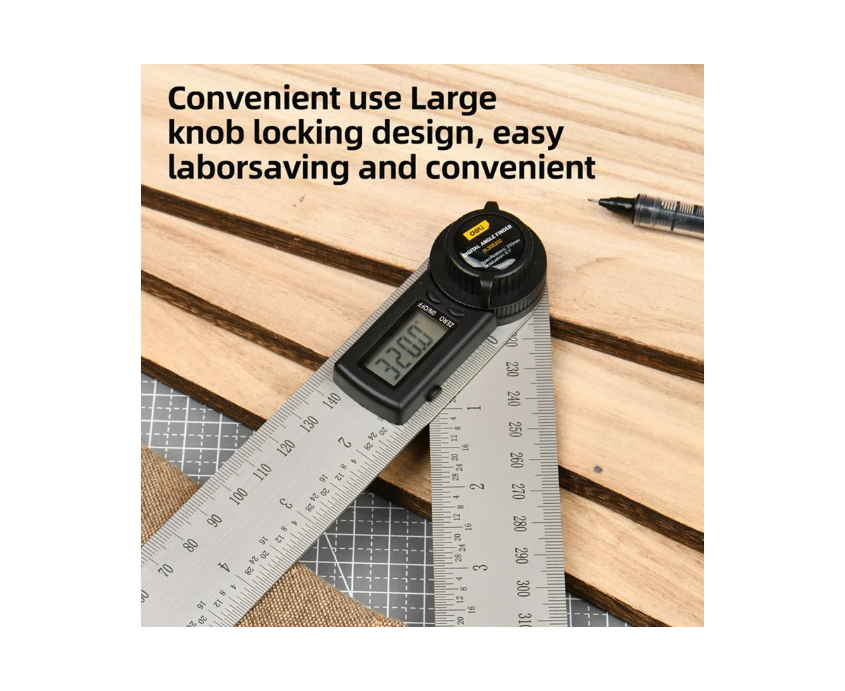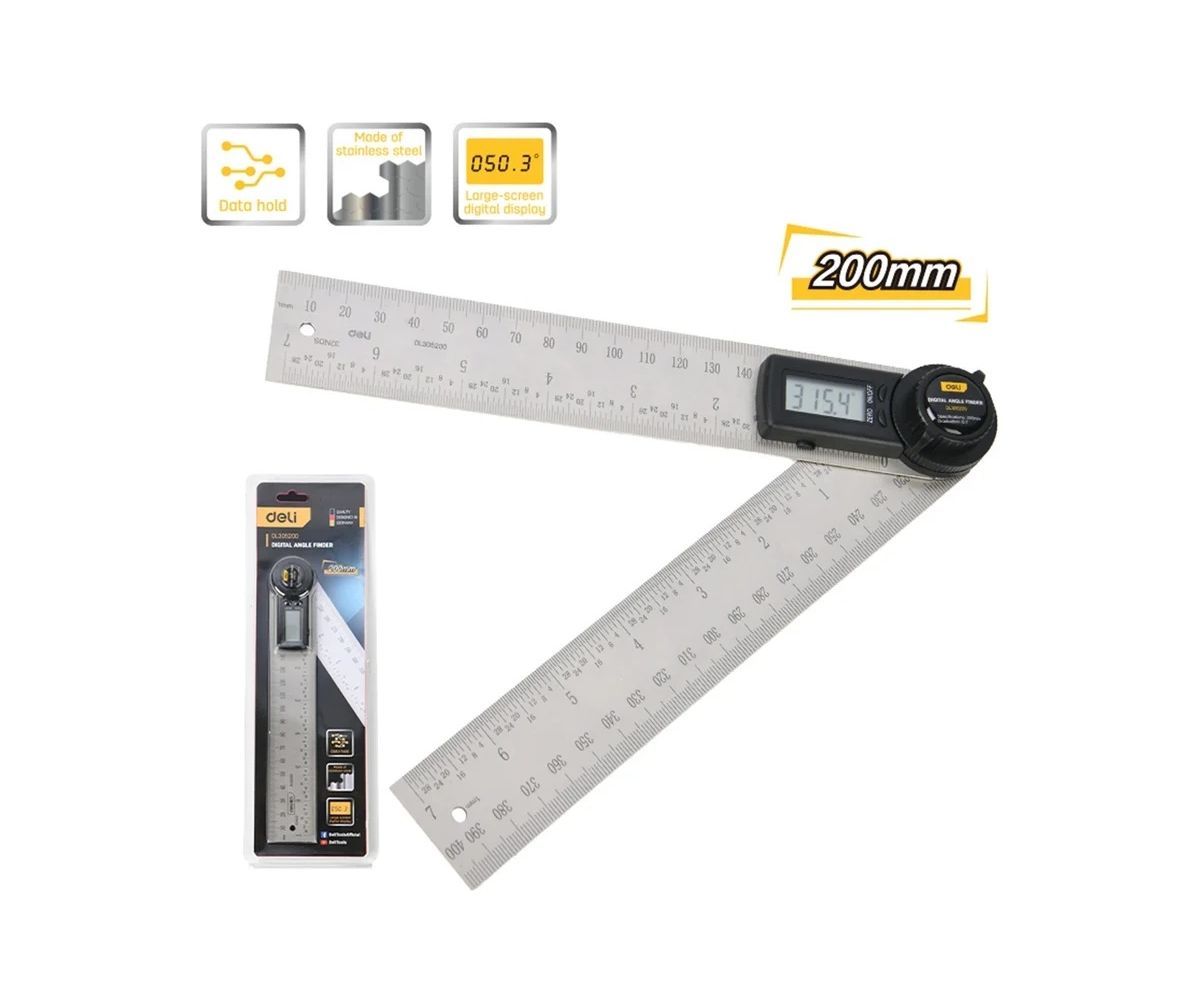 Угломер электронный Deli DL305200—профессиональный инструмент для точного измерения углов в строительстве, столярном деле и металлообработке. Благодаря диапазону 0–360° и шагу измерения 0,1°, он обеспечивает идеальную точность даже в самых ответственных работах. Корпус из нержавеющей стали гарантирует долговечность и устойчивость к коррозии.
