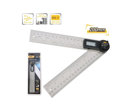 Угломер электронный Deli DL305200 200/400мм, диапазон 0-360 град., нержавеющая сталь