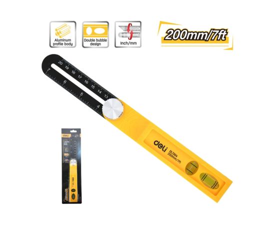 Угломер переставной-малка Deli DL7304 с пузырьковым уровнем 200мм
