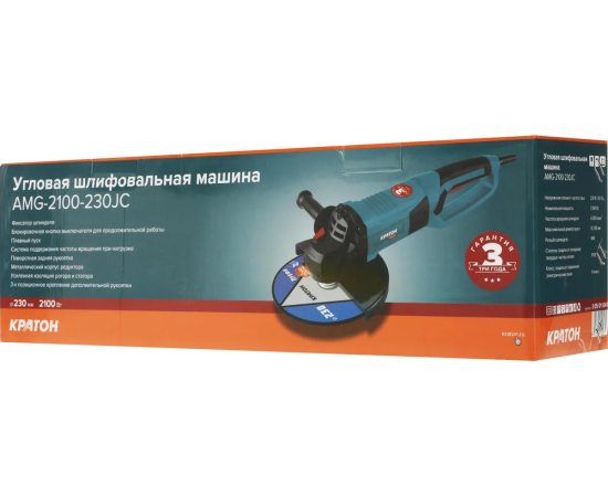 Углошлифовальная машина Кратон AMG-2100-230JC 2100Вт 6000об/мин рез.шпин. M14 d=230мм