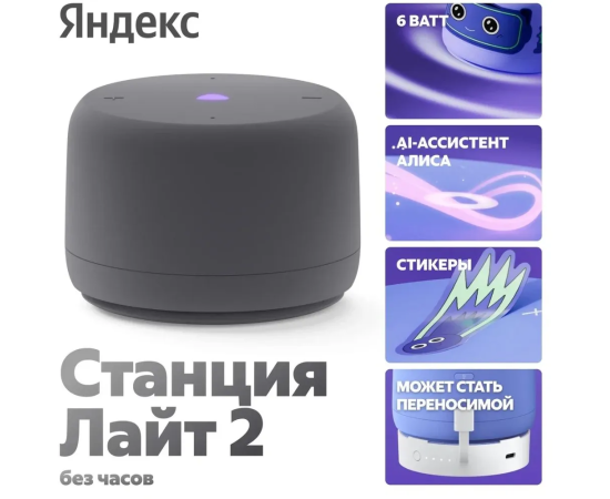 Яндекс Станция Лайт 2 YNDX-00028GRY без часов, графитовый