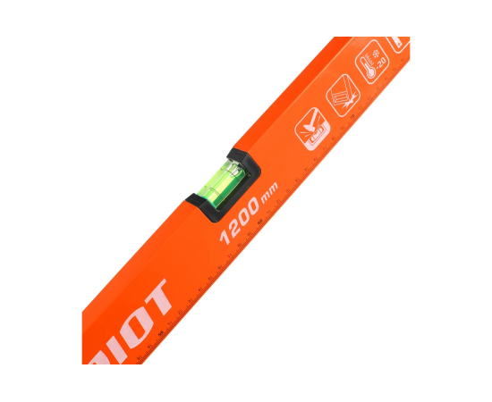 Уровень строительный LRP-1200 длиной 1200 мм для определения отклонения плоскости относительно горизонтали или вертикали с точностью до 0,5 мм/м. Корпус выполнен из алюминиевого сплава, устойчивого к коррозии. Торцы заглушки обеспечивают устойчивость к деформациям при падании.