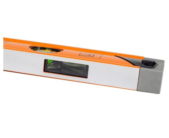 Вихрь - измерительный инструмент при строительных, ремонтных и отделочных работах для поиска и исправления отклонения поверхностей. Корпус прочный и износостойкий, изготовлен из алюминия. Фрезерованная рабочая поверхность служит для уменьшения возможной погрешности при измерениях. Длина уровня 600 мм. Особенности: Усиленный корпус уровня изготовлен из упрочненного прямоугольного алюминиевого профиля. Фрезерованная рабочая поверхность обеспечивает дополнительную точность измерения. В верхней части имеется окошко с зеркальным отражателем, позволяющее без ошибок снимать показания во фронтальной и поперечной плоскостях. Уровни длиной от 600 мм оснащены двухкомпонентными рукоятками. Модель имеет три мерительных глазка для проверки отклонений по горизонтали, вертикали и под углом 45 градусов. Использование электронного контроля при установке пузырьковых ампул обеспечивает надежность инструмента при эксплуатации. Точность измерений – 1 мм/м (0,057 градуса).