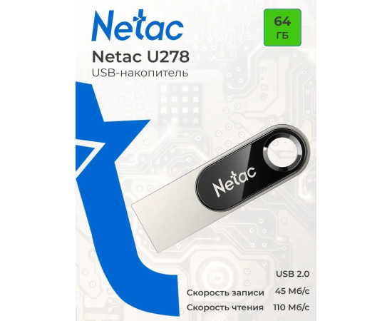 USB 64GB Netac U278 чёрный/серебро