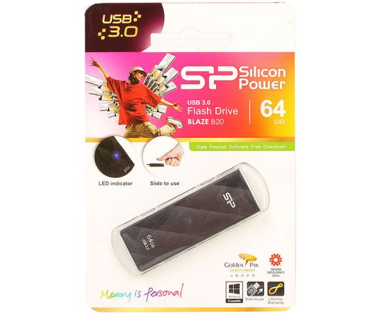 Flash Drive 64G USB 3.0 SiliconPower Blaze B20 Black (SP064GBUF3B20V1K)