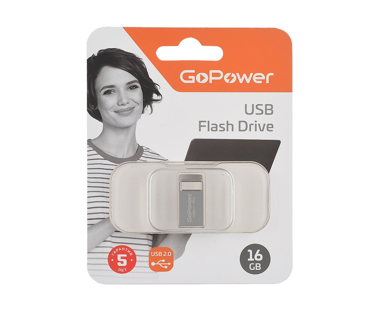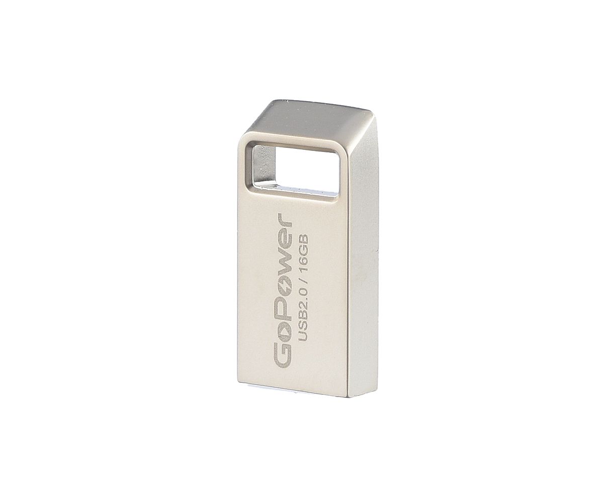 USB-флешка GoPower Mini (00-00027357) 16GB USB2.0 металл серебряный