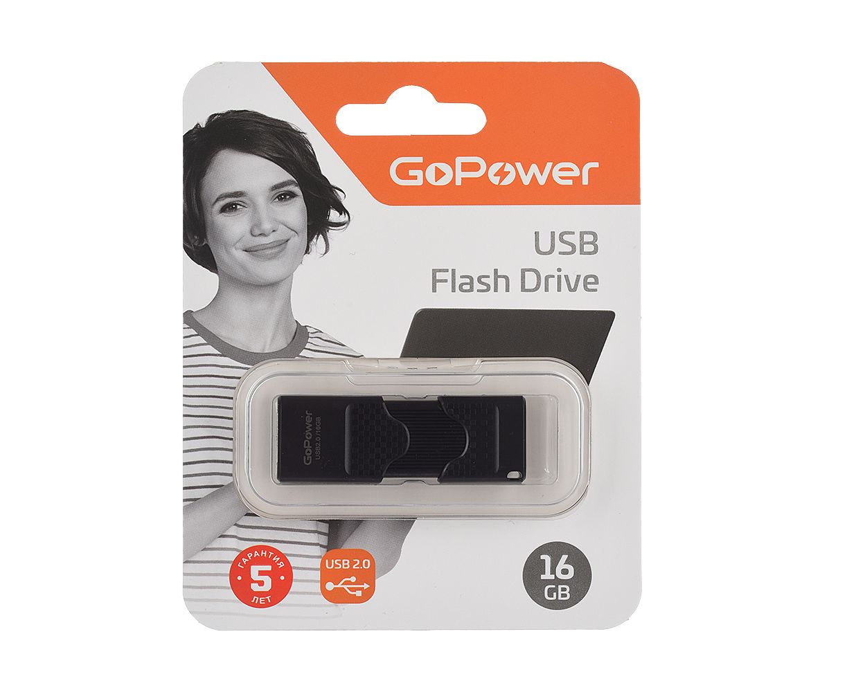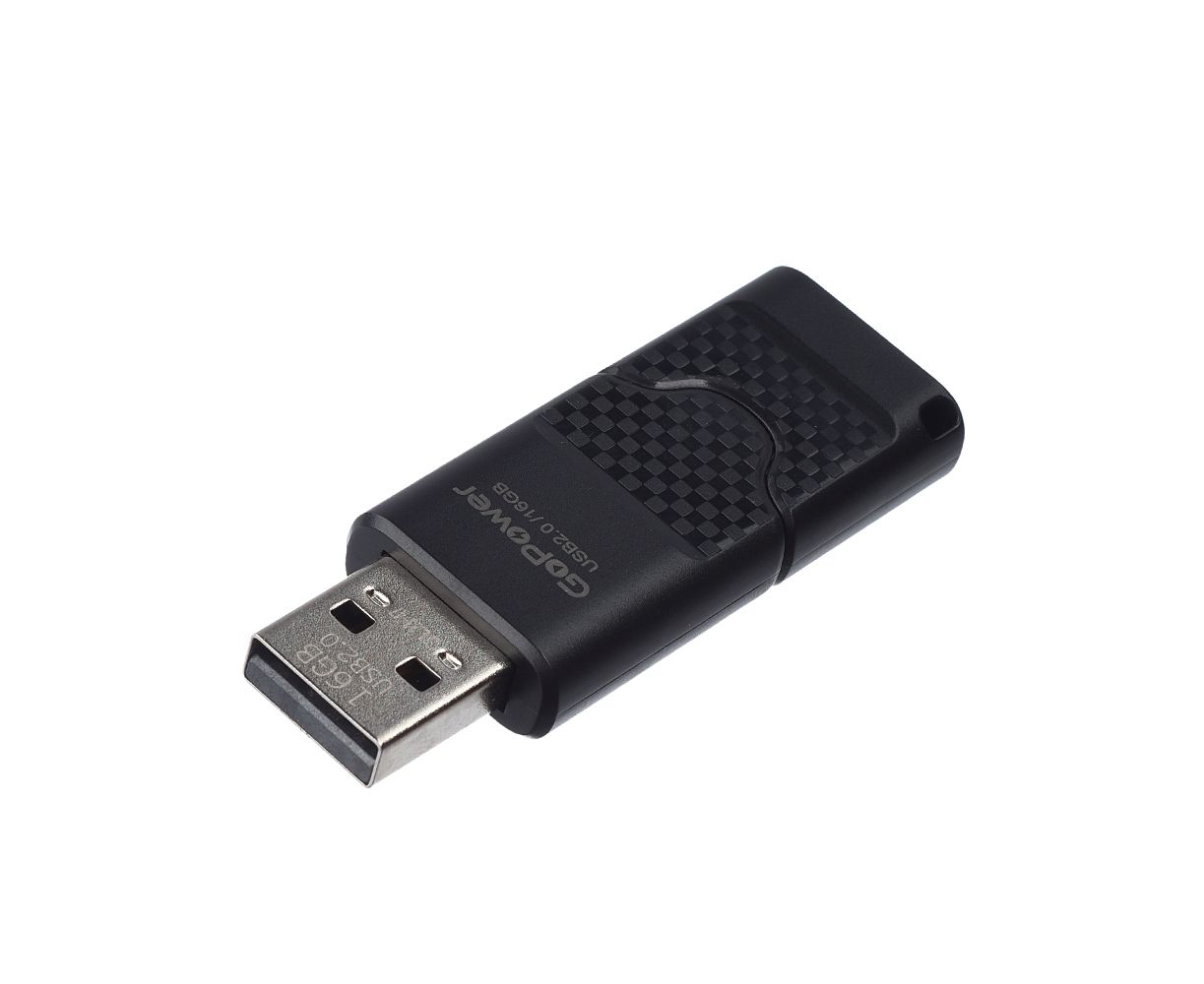 USB-флешка GoPower Slider 00-00025963 16GB USB2.0 пластик черный матовый (1/50/1000)