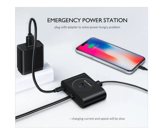 Дополнительный интерфейс питания micro USB на задней панели концентратора поможет вам обеспечить дополнительное питание при подключении мощных устройств, таких как жесткий диск большой емкости, для его зарядки можно использовать зарядное устройство для смартфона.