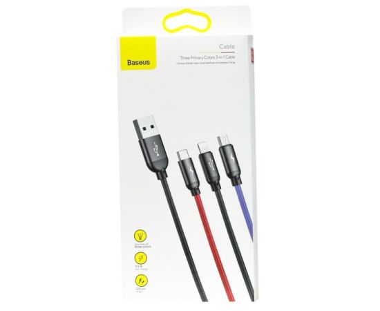 USB-кабель Baseus CAMLT-BSY01, 3-в-1,Type-C/Apple/micro, силикон, 1.0 м, круглый, разноцветный