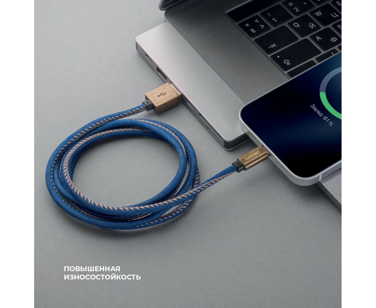USB кабель Deppa 72277 Jeans USB-USB Type-C Blue (1,2м)