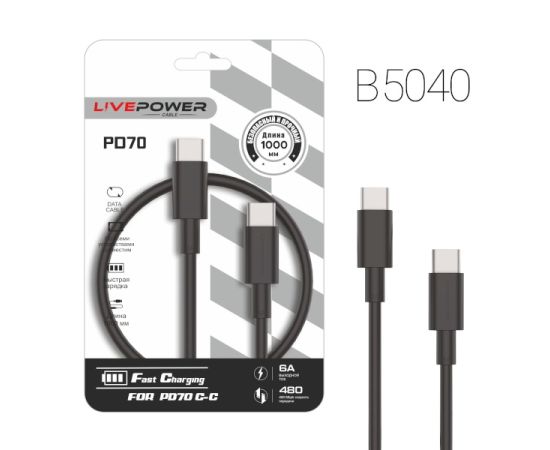 USB-кабель Live-Power PD70 C-C 20W 1000mm Black 20шт в упаковке
