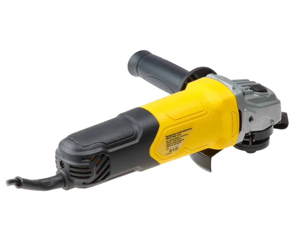 Угловая шлифмашина MOLOT MAG 1210 MAG121000027 имеет прочный и удобный корпус, устойчивый к повреждениям.