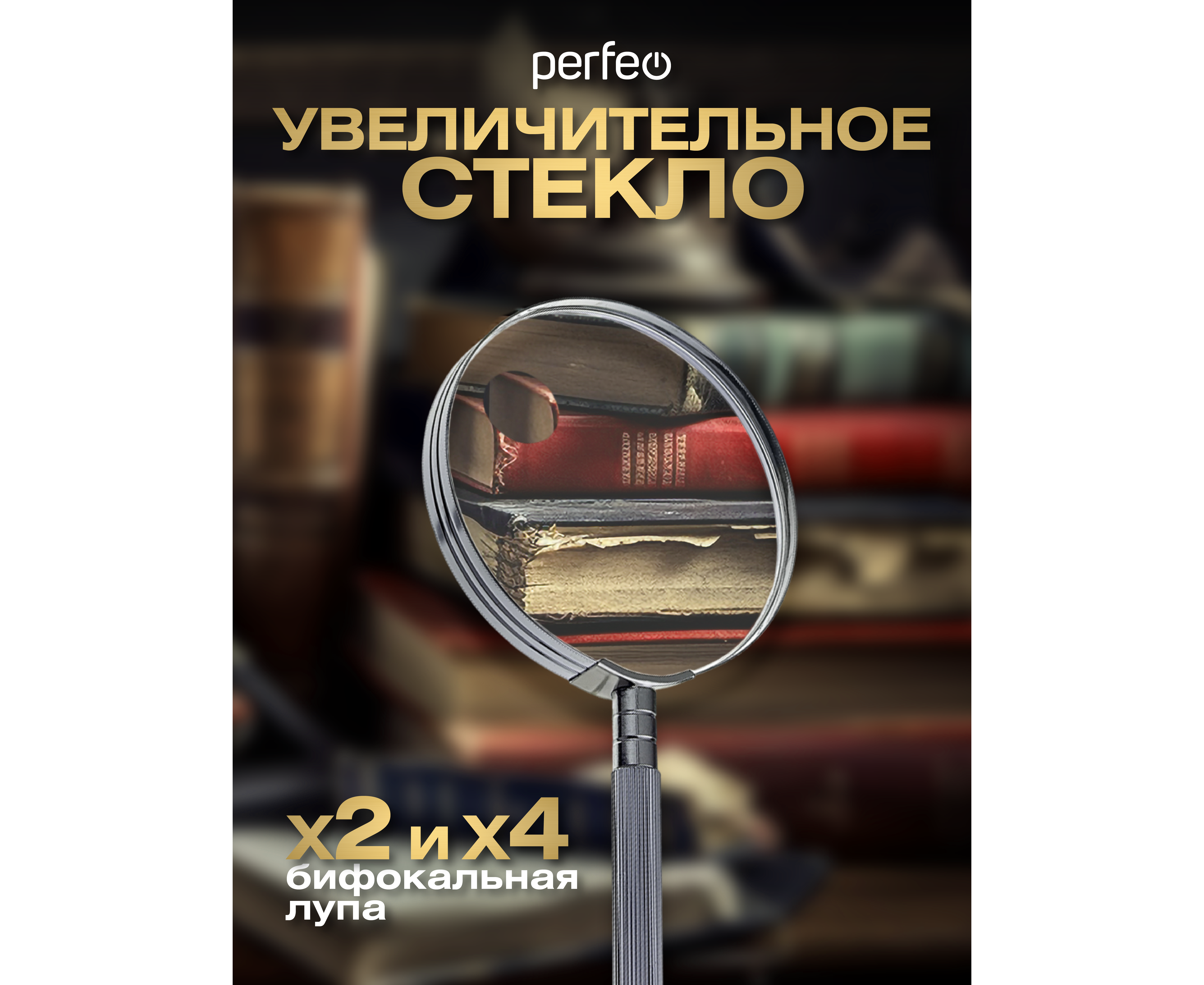 Увеличительное стекло (Лупа) Perfeo PF-SC9000 бифокальная 2х,4х, 4"(100 мм), металл, (Арт. PF_D0102)