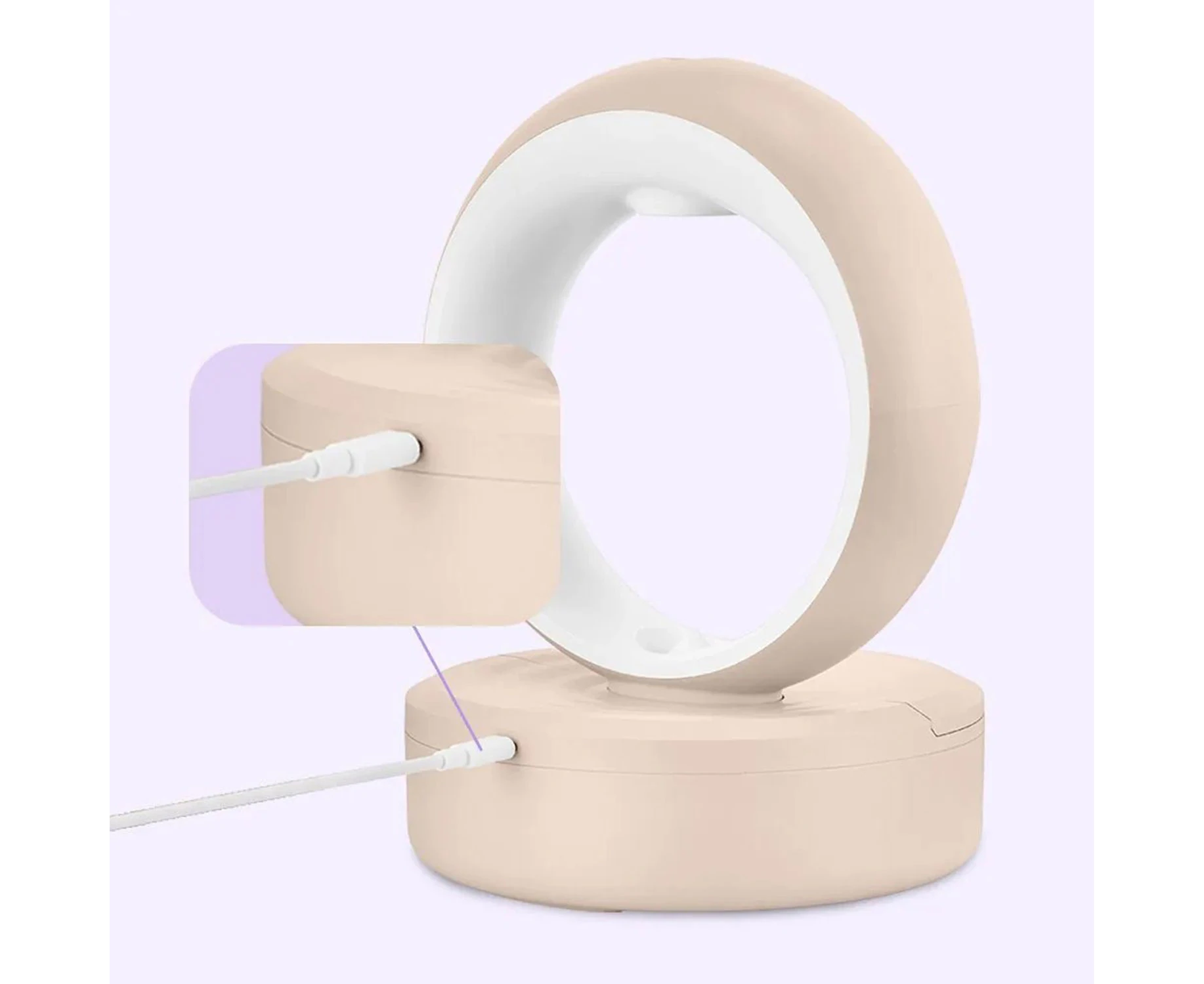 Чтобы включить устройство, вставьте USB Type-C в разъём на корпусе увлажнителя, затем подключите к блоку питания (в комплект не входит). Загорится индикатор. Нажмите кнопку «Вкл/Выкл» и начнется подача тумана и включится подсветка