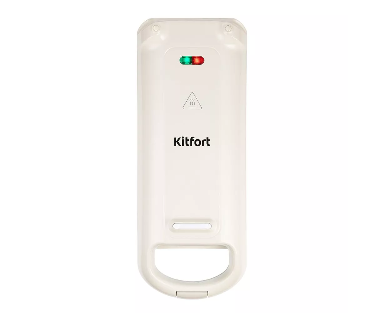 Электрическая вафельница Kitfort КТ-1690 имеет корпус, выполненный из прочного термоустойчивого пластика. На верхней поверхности вафельницы нанесено изображение с предупреждением о высокой температуре, чтобы избежать возможных ожогов.