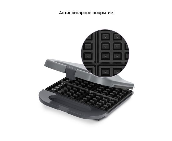 Антипригарное покрытие панелей вафельницы не дает тесту прилипнуть в процессе приготовления и позволяет готовить с минимальным количеством масла. Также антипригарное покрытие облегчает чистку панелей.
