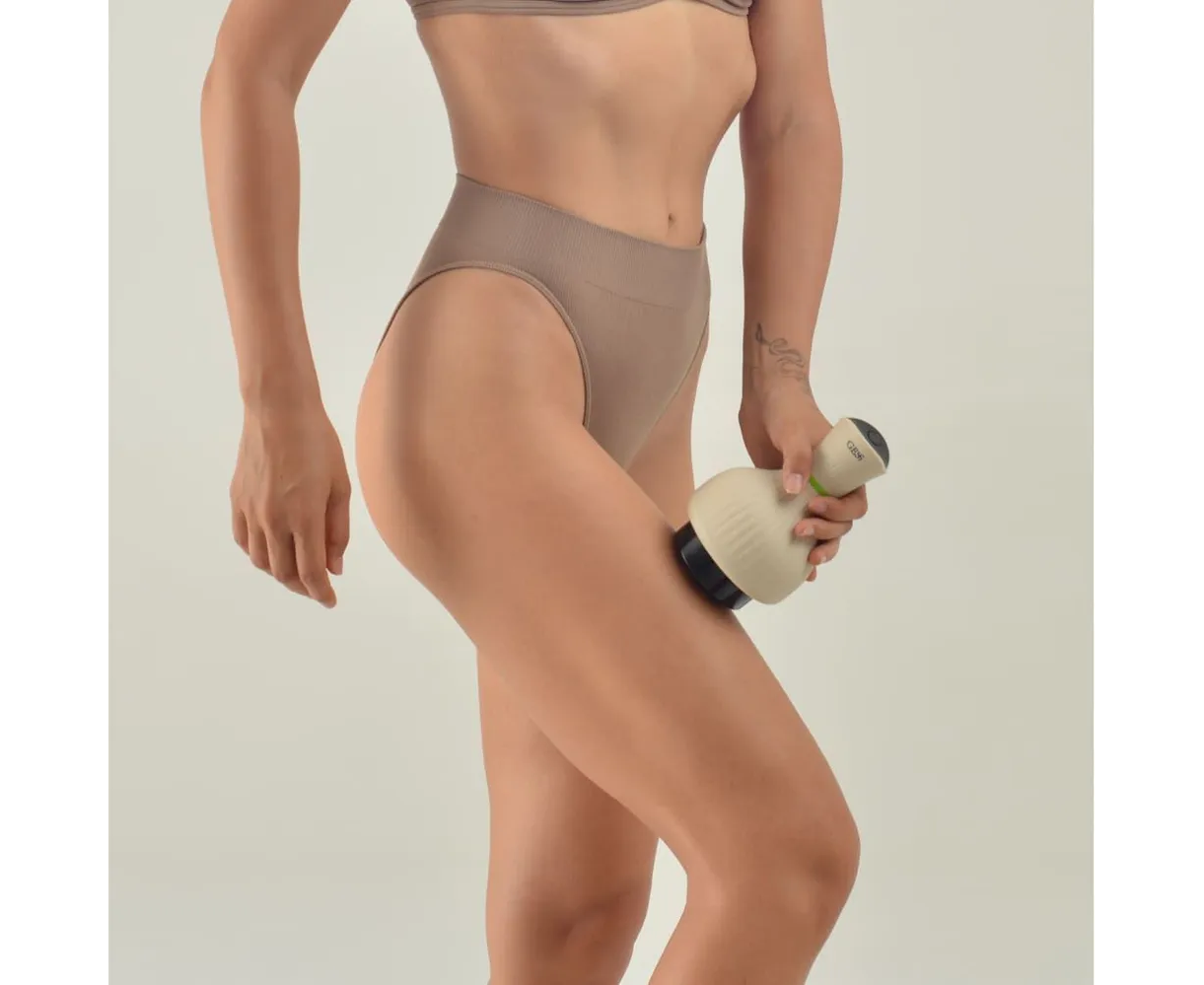 В режиме вибромассажа разбивает жировые отложения, уменьшает проявления целлюлита, выравнивает рельеф кожи.