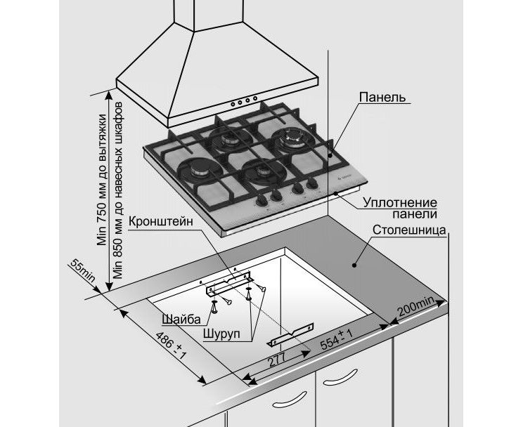 Размеры ниши для встраивания (ШхГ)554 х 486 мм