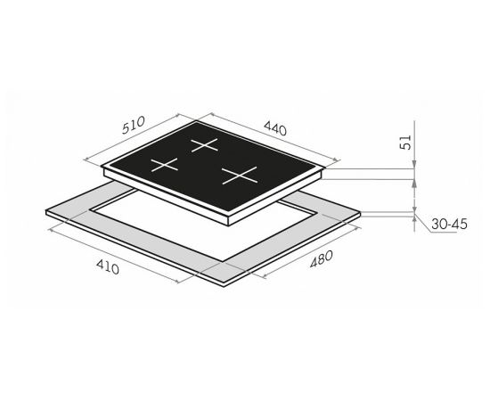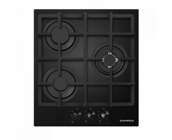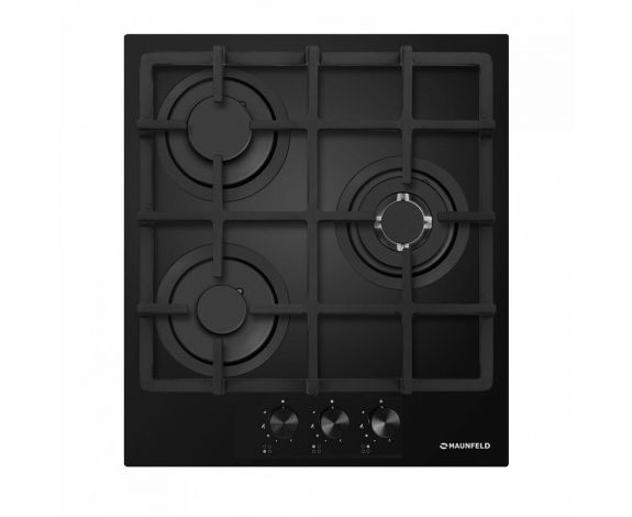 3 газовые итальянские конфорки SABAF: одна быстрая WOK конфорка 3000W, две полу быстрых конфорки 1700W и 1000W. Фронтальное управление, 3 круглых металлических поворотных переключателя (D35мм), автоматический электроподжиг под ручкой управления, возможность работы от магистрального газа и газа в баллоне (тип G30).