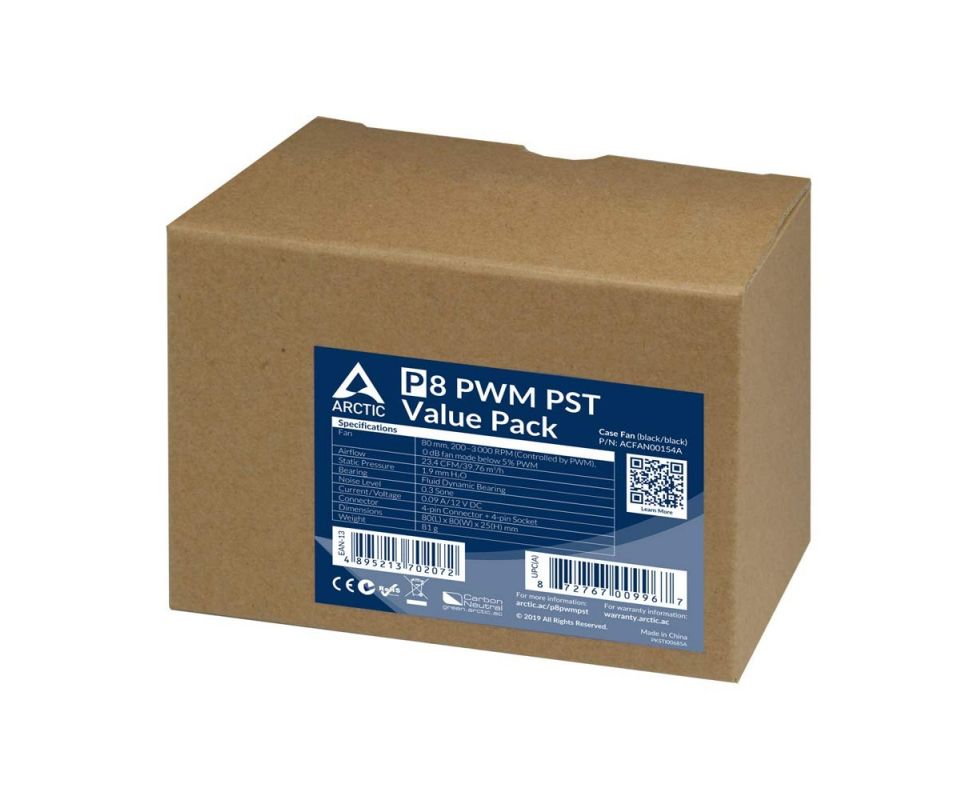 Вентилятор ARCTIC P8 PWM PST (ACFAN00154A) Value Pack (Black/Black) - retail