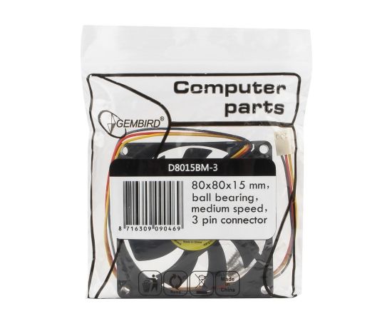 Вентилятор 80 мм Gembird D8015ВM-3, 80x80x15, 3 pin, 2600 rpm,BB (ball bearing), провод 30 см