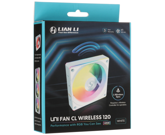 Вентилятор Lian Li Uni Fan CL Wireless 120 (G99.12CL1W1W.R0) / 12CL1W1W White / 120x124x28мм (PWM, ARGB, 2150 об/мин (Max.), 29,8dBa)