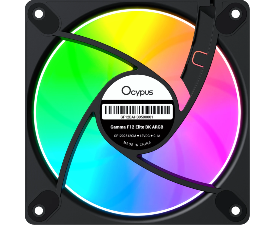 Вентилятор Ocypus Gamma F12 Elite BK ARGB Reverse Blade 3 in 1, 120x120x25mm, 4-Pin PWM, 600-1800 RPM, 26 DBA Max, Hydro Bearing