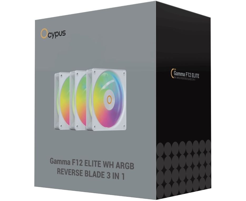 Вентилятор Ocypus Gamma F12 Elite WH ARGB Reverse Blade 3 IN 1, 120x120x25mm, 4-Pin PWM, 600-1800 RPM, 26 DBA Max, Hydro Bearing