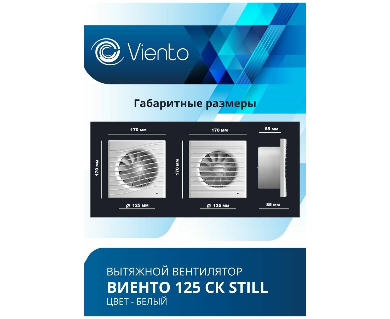 Вентилятор вытяжной ВИЕНТО 125СК Still (Виенто 125СК Still) осевой с обратным клапаном малошумный
