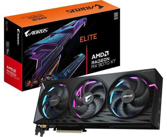 Видеокарта Gigabyte AMD Radeon RX 9070XT Aorus Elite OC (GV-R9070XT Aorus E-16GD 1.0) 16ГБ, GDDR6, Ret