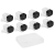 8 камер, HDMI-кабель, ethernet-кабель, адаптер питания, видеорегистратор, винты, документация, мышь, наклейка, отвертка, шаблоны разметок