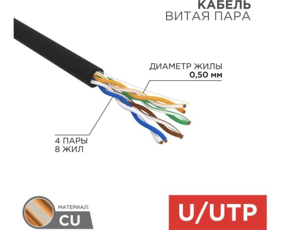 Технические характеристики REXANT OUTDOOR витая пара, 4PR, 24AWG, CAT5e 01-0045