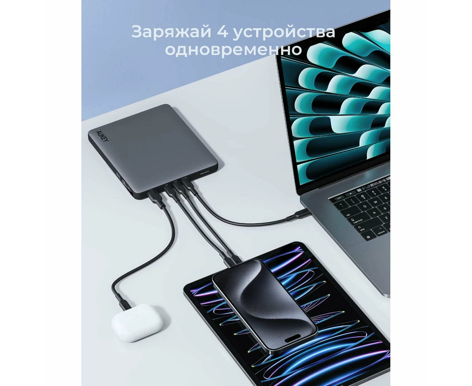 Мощность - 100 Вт; Разъемов USB Type-C - 2 шт.; Сквозная зарядка