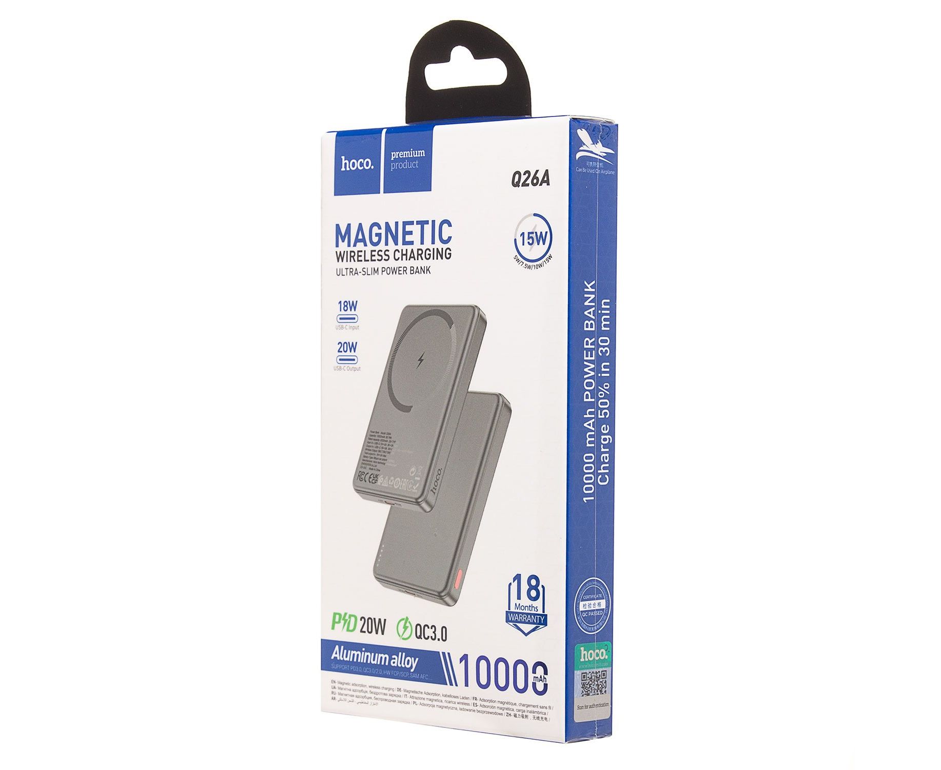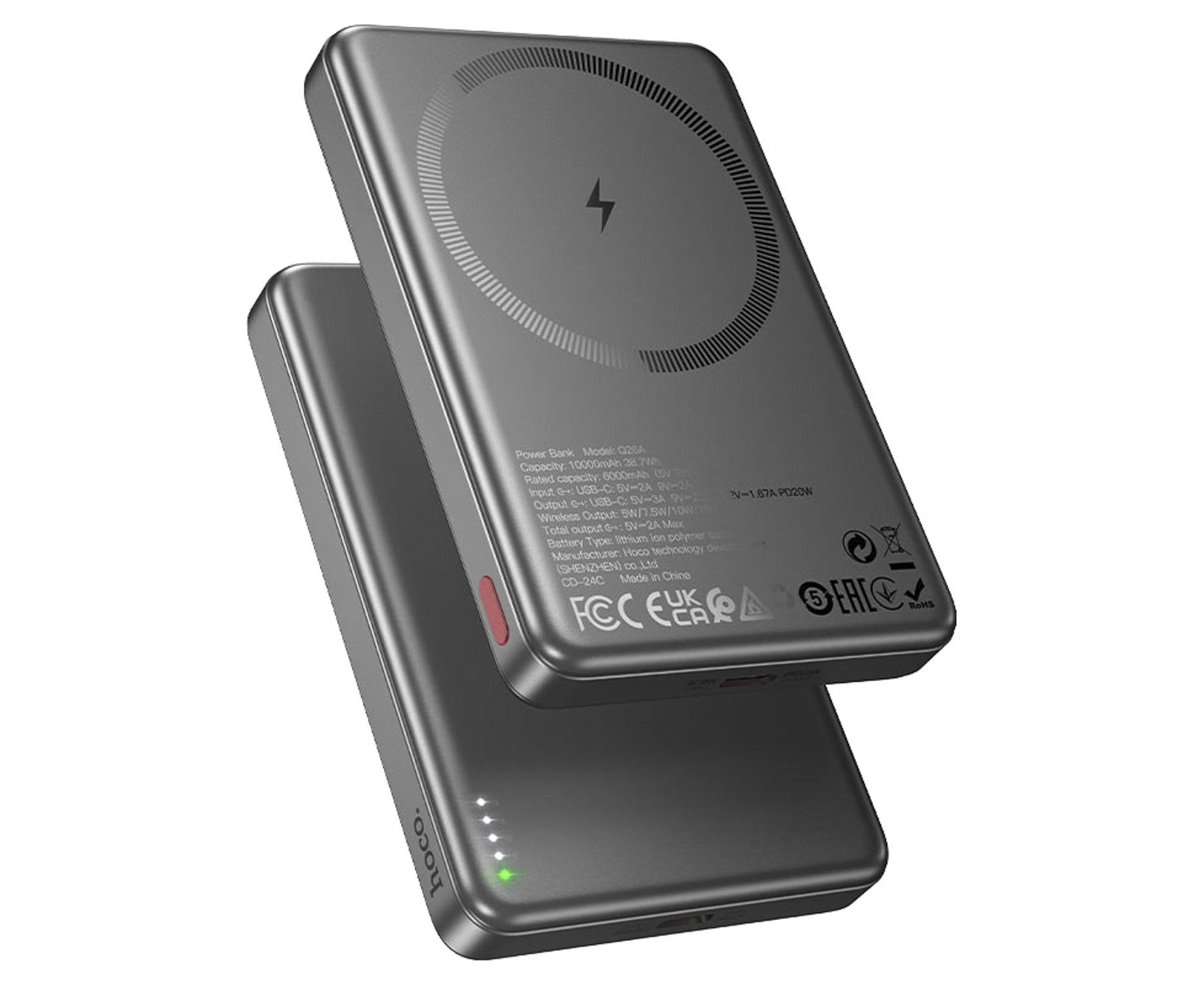 Внешний аккумулятор Hoco Q26a Joy PD20W MagSafe 10000mAh Type-C/Type-C/MagSafe (metal gray)(239599)