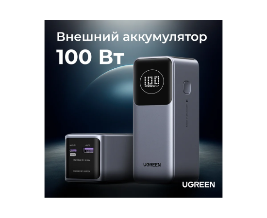 Внешний аккумулятор UGREEN PB724 (35526B) 12000mAh Quick Charging 100W Power Bank Gray