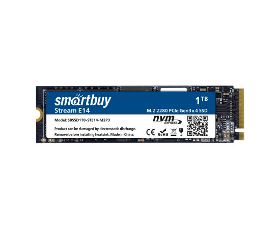 Внутренний SSD Smart Buy 1TB Stream E14, PCIe Gen3 x4, R/W - 1100/1800 MB/s, (M.2), 2280, TLC 3D NAND