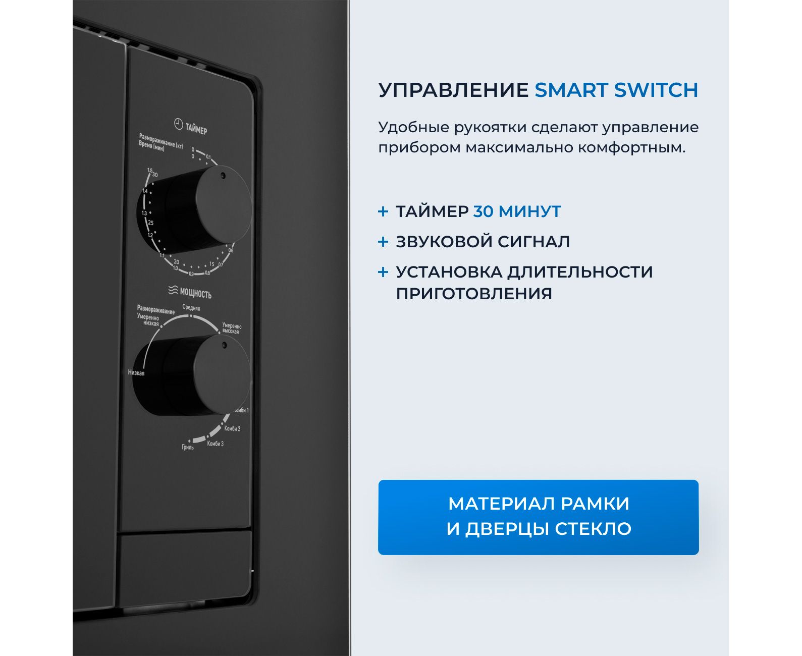 9 уровней мощности: 5 мощностей микроволн / 3 мощности режима Комби (Гриль+Микроволны) / Гриль