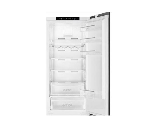 Холодильник Smeg C8194TNE — вместительная встраиваемая модель объемом 306 л. Полностью скрываясь за мебельными фасадами, он способен стать гармоничной частью кухонного гарнитура в любом стиле. А благодаря такой дополнительной прослойке, уровень шума при работе становится еще ниже, обеспечивая комфорт. Электронное управление снабжено LCD-дисплеем, а при повышении температуры или оставленной открытой дверцей предусмотрен акустический сигнал.